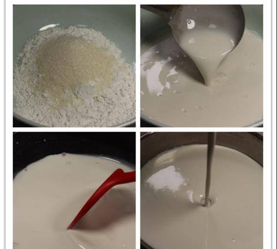 1、放入锅中搅拌,主要是为了让面糊有一个糊化的过程,可以很好地防止米水分离。