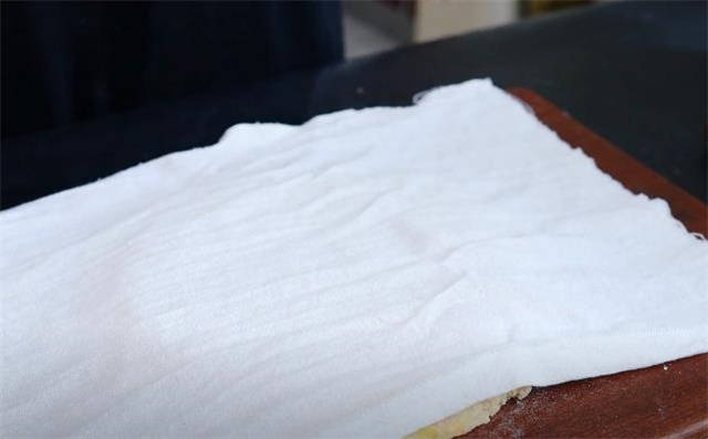 6.这个上面再覆盖一张饼皮,然后把边缘处捏紧了。