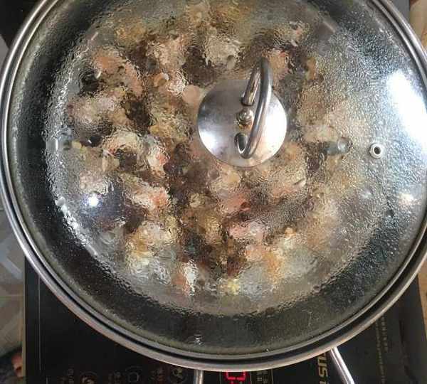 第3步、加入酱油、蚝油及二三汤匙水煮开。