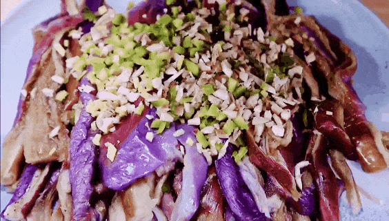 茄子的吃法很多,但多数吃法烹调温度较高、时间较长,不仅油腻,营养损失也很大。煎炸茄的维生素损失量可达50%以上。今天给大家介绍的是蒸的茄子,手撕茄子,味道刚刚好。