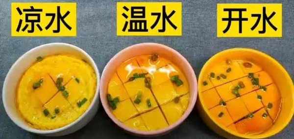 虽然蒸水蛋是一道再平凡不过的菜肴,但是其做法却一点也不含糊!大家都知道蒸水蛋是用清水和鸡蛋混合去蒸就行,却每个人蒸出的水蛋都各不相同!有的人蒸出的水蛋滑嫩无比,而有的人蒸出的水蛋却全是蜂窝眼还很干!所以网上有个问题“蒸水蛋,到底是用凉水还是热水”,各网友的回答都是千奇百怪!各有各的道理!那么蒸水蛋到底是用凉水还是热水呢?