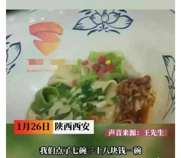 据了解,该事件发生在2023年1月26日,也就是正月初五。来自河南的王先生带着家人来到西安游玩,在参观完兵马俑景区以后,来到附近一家面馆,点了7份38元一碗的