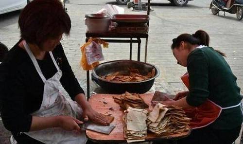 但是因为美味,而且又不贵,嘴馋的人总愿意等着。这两位阿姨正在准备需要的食物,豆腐,每天切上一百斤的豆腐都是常有的事情,虽然很累,但是已经习惯了这样的工作量。