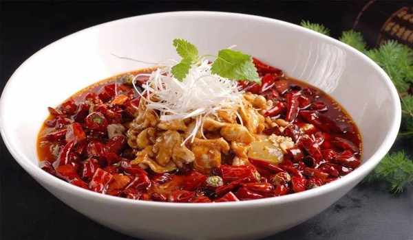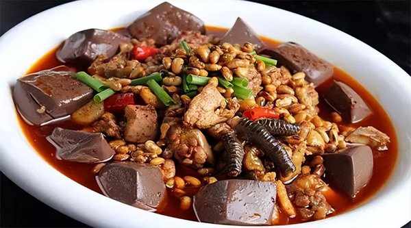 土鸡半只 鸡血旺300克 油酥黄豆80克 姜米、蒜米、葱节、红花椒、豆瓣酱、辣椒面、小米椒节、盐、白糖、胡椒粉、花椒面、菜油各适量