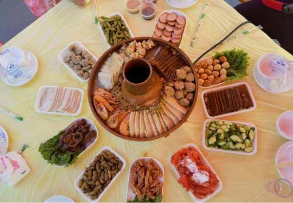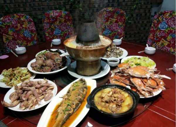山海关浑锅选材非常讲究。汤要用高汤。一般用祖传秘方煮的老鸡汤或大骨头汤。清水锅少了浑,风味也少了很多。锅要用铜锅,最好用那种老式的铜耳火锅。俗话说美食工具;火要用炭火,锅中间的空膛要用木炭,哔哔哔,红红火火,只有这样才有味道。锅里有各种各样的东西,可以放各种各样的食材。随着炭火的升温,热空气包裹着浓浓的香味飘散,可以边煮边吃。