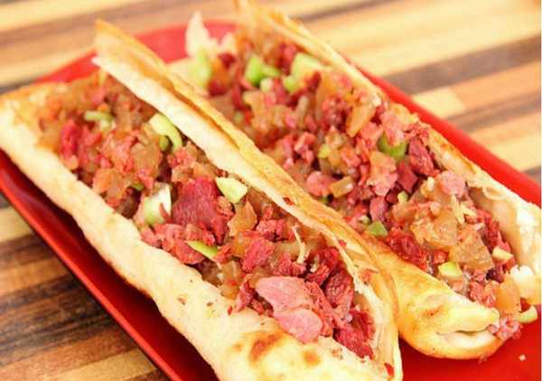 香河肉饼是河北省廊坊市香河县的特产。其特点是皮薄,肉厚,油香,味道鲜美,质地柔软,肉质鲜嫩,符合北方人的饮食习惯,既可以当菜,也可以当主食。香河肉饼有200多年的历史。然而,它的前身可以追溯到1000多年前的突厥饼。据说当时游走在中国北方草原沙漠的游牧民族——突厥族,因为牛羊肉丰富,面食稀少,所以来找客人,请他们吃面食,是一种很高的优待。