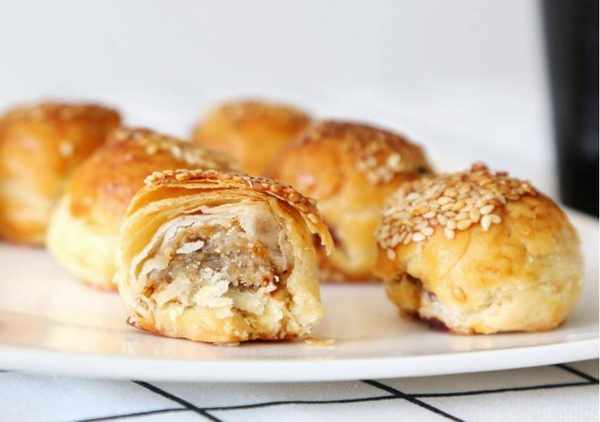 棋子烧饼因其形状和大小与中国象棋相似而得名。经过几次改进,很快就出名了,成为唐山独一无二的美食。它是唐山的特产之一。使用大油和香油合酥,有肉、糖、什锦、香肠、火腿等各种馅料。内外烘烤酥透,色泽金黄,肉馅鲜香,酥脆适口不腻,便于保存。