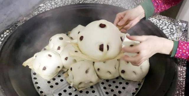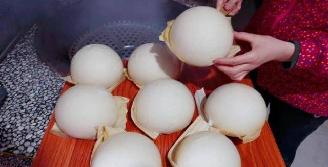 7.哇!一股枣香味!第二锅大饽饽也出锅啦!这一锅没有放枣,这一锅少,醒发的特别好,特别大!大家感觉这一个馒头有没有一斤?我感觉差不多有一斤,得吃好几顿吧!