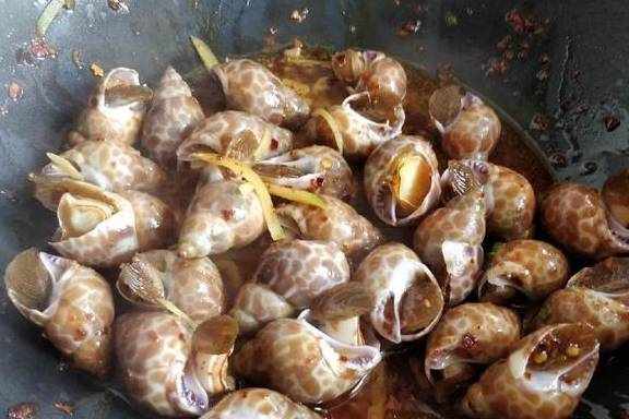 接下来一起看看做法吧——用时:10分钟。难易程度:简单。份量:2人份。用料:花螺400克,葱姜蒜适量,植物油2勺,盐半勺,白胡椒粉少许,辣椒碎3勺,啤酒两勺。