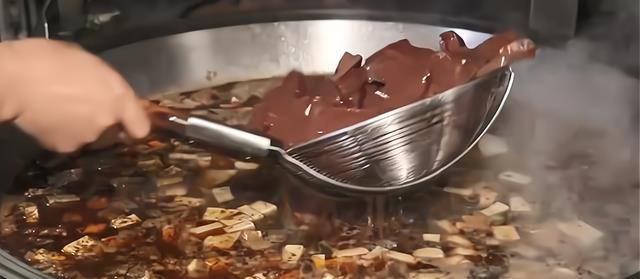 这家店是一家30年的老店了,做的是安徽特色早餐“黑白汤”。老板今年60多岁了,可还是干劲十足,儿子和儿媳妇也跟着干。首先介绍一下黑白汤的主材料之一“晃子”。晃子就是猪血,用安徽话来说叫猪晃子,晃子是做“黑白汤”的主料之一。老板的儿子说刚开始做的时候一天就能用70斤的猪血,现在来吃的人多了,每天的用量至少是之前两倍,因为每天都要卖1400多碗。老板介绍说他们店里用的猪血都是每天拿新鲜的猪血回去自己加工过滤做的,所以非常的干净。而且吃血可以补铁、清肺、清除血液垃圾好处多多。