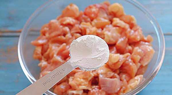 随后放入小勺的生粉,继续搅拌搅出浆来就差不多了,腌制20分钟。
