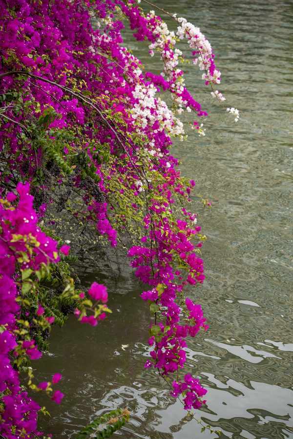 我们前来打卡的时候天气并不是很好,但满眼的绿色和清新的空气让人感到心旷神怡,江边怒放的玫红色和粉红色三角梅为这个春天增添了鲜活艳丽的色彩,待到临近离开的时候,天气稍微好转,公园内外的景色更加明艳。