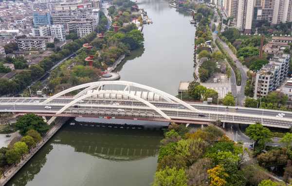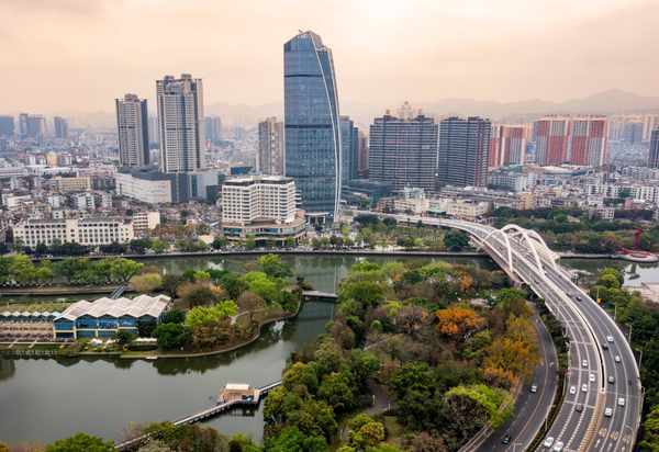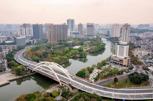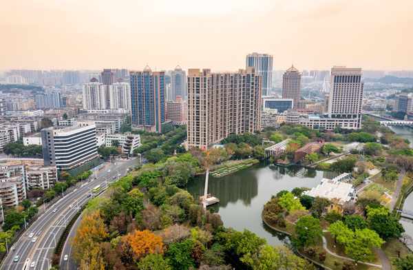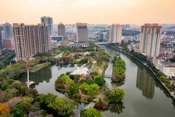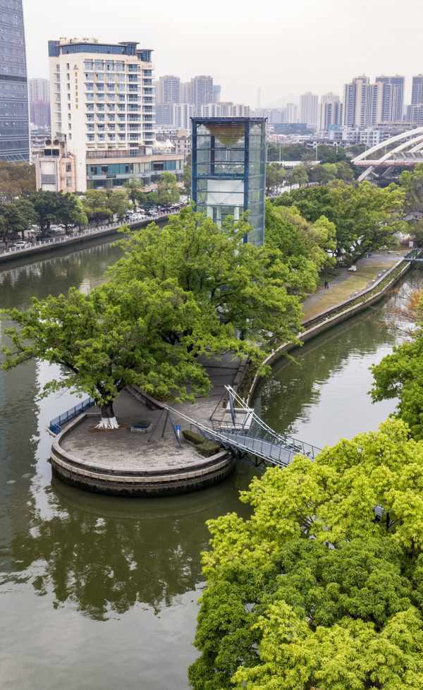 从高处看,岐江公园就像漂浮于水面上的一艘船,这里绿意盎然,繁花似锦,和中山市的城市景观互相映衬,美出了时尚格调。