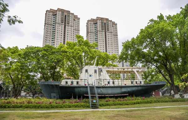 岐江公园没有围墙,从北门进来,首先会看到长长的铁轨,这不是长途火车的轨道,而是粤中造船厂遗留下的轨道,是20世纪50年代的产物,当年用来调动物资,看到它不禁让人想到那段辉煌的工业史。