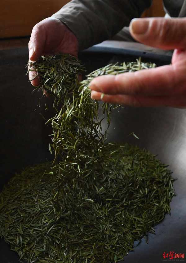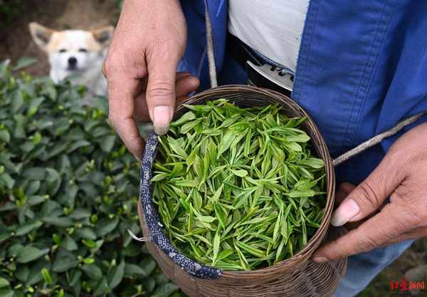 今年3月开始,正值采摘明前茶的高峰期。茶农王师傅和妻子每天早晨7点钟来到茶园采摘鲜叶,平均每天要在茶园采摘10个小时,每人每天能采7、8斤左右的鲜叶。