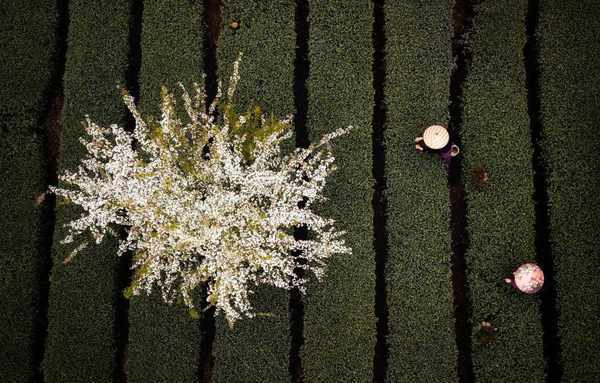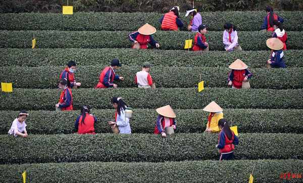 在茶乡旅游景区,大批踏青的游客和学生体验着茶乡文化生活。