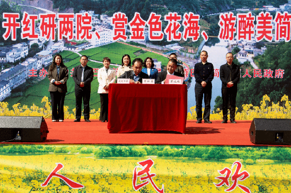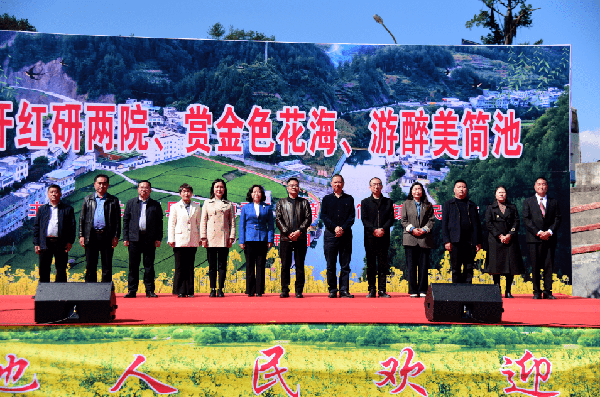 县政协主席王孝琴、县人大常委会副主任范欲晓、副县长张梓媛、县政协副主席姚智儒出席开幕式。王孝琴宣布简池镇2023年“开红研两院、赏金色花海、游醉美简池”旅游文化活动正式开幕。