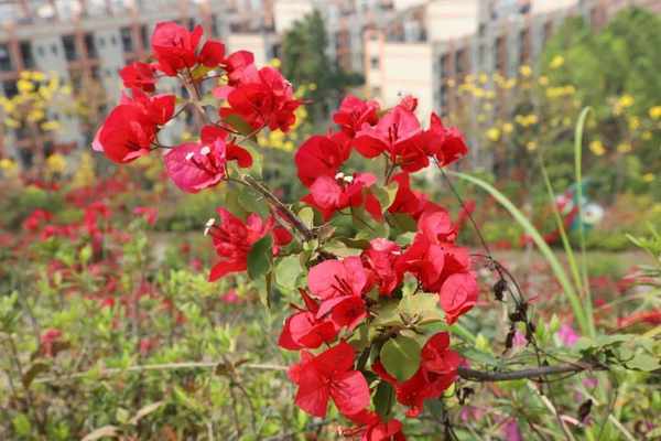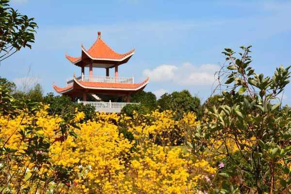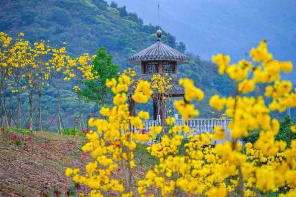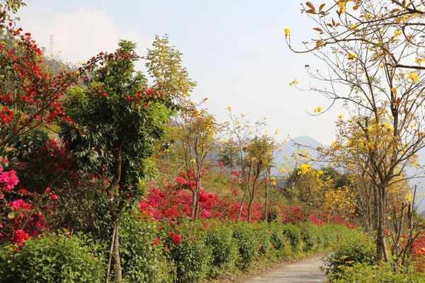 闲暇无事,又听说明园的花开了。我便邀上一伙伴,与春天相遇。走入明园,是盎然的绿,艳丽的粉,纯洁的白。它们似在比美,又似在炫耀。风一吹,它们就争先恐后地跳下来,为单一的道路穿上新衣。我拾起一朵花儿,未到鼻子,那袭人的香气就藏不住了。再往深探索,便会发现春天颜色的多样。走进一条平平无奇的小路,而它的两旁却不平凡。入目的是玫红的海洋,一簇接着一簇。细心感受,是春天的热烈。接着,我来到了文峰阁,它是多么的壮观,可将半个阳春收于眼下,还有一山头的黄花风铃。黄的耀眼,仿佛要与太阳一较高下。
