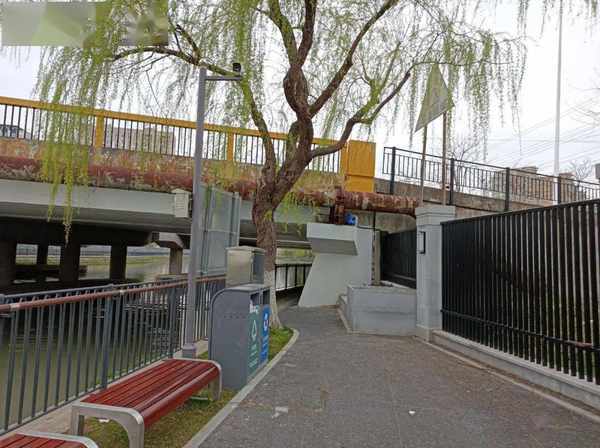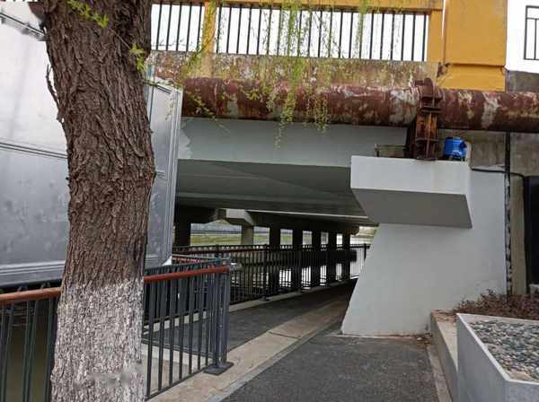 以前,通过黑松路进入张家浜路,右拐沿河道走,到了两河交叉处,是瑞东医院的围墙,无法通过,只能原路返回。