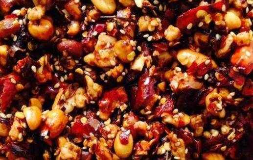 等锅中的油稍凉后,放入大酱和豆豉,小火炒出香味后,再放入辣椒末和姜末,翻炒均匀之后,熬至一个小时,待锅中的水分挥发的差不多了,再放入花生碎和白酒,再炒20分钟,辣椒中的水分完全蒸发掉再放入白芝麻,关火之后用铲子不断的搅拌,让锅中的余温将白芝麻焖熟。大家知道是多哪一物了吗?就是白酒这东西。