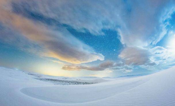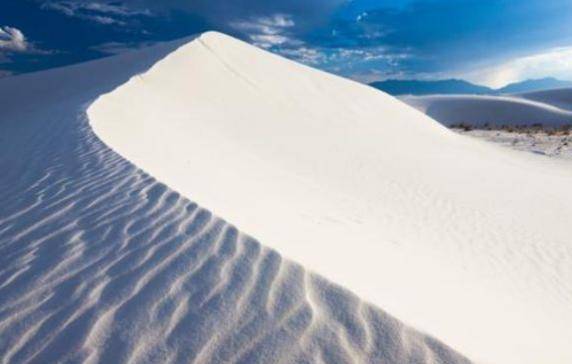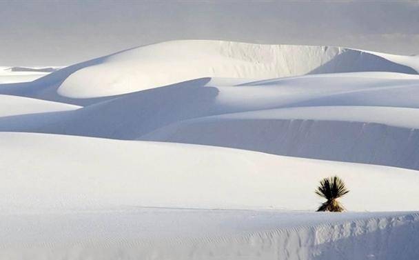 在美国的新墨西哥州,这里就有一片纯白的沙漠,一望无际的白色,仿佛就像是被一层厚厚的雪覆盖一般,因此这里也被誉为终年“下雪的天堂”,如果从远处遥望的话,这片白色的沙漠就真的如同“天堂”一般,十分的耀眼,因为正常人无法想象的沙漠会是白色的,就会把这理解成纯白无瑕的高原,但同时又感觉不到一丝寒冷,恐怕除了天堂这样的词语,再也找不到更加贴切先让它的词语了吧。
