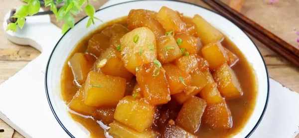 2.锅里热油爆香蒜姜片后,倒入冬瓜块翻炒。接着放入调味料炒香后,倒入适量的清水,烧制冬瓜入味后,撒入葱花大火收汁即可。