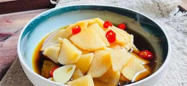 材料:白萝卜2条,蒜子10克,小米椒适量。