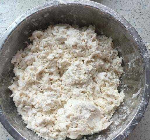 1,把面粉倒入面盆中,准备一个干净的碗,放入适量的酵母,加入30度左右的温水,用筷子把酵母搅拌融化,然后用少量多次的方法把酵母水倒入面粉中,边倒边用筷子搅拌,直到面粉变成面絮,然后用手把面絮揉成光滑的面团。