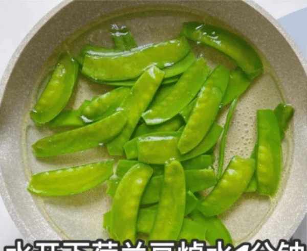 ①:买来用过的青菜,荷兰豆剪去两端,洗净沥干水,锅中烧开少许水,倒入荷兰豆焯水一分钟,中间加入盐和油,荷兰豆的口感特别香脆,不影响原有的营养价值。