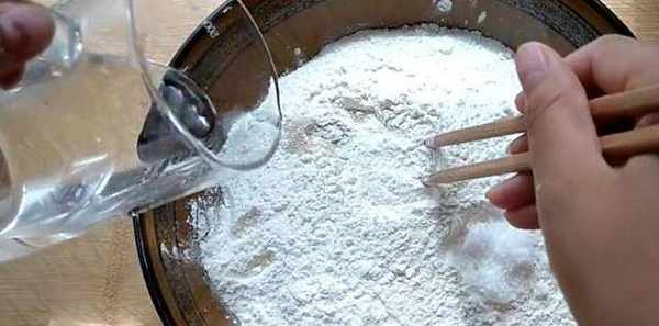 1.在碗中倒入高筋面粉300克,加入3克酵母,3克白糖促进发酵,温水300毫升和面,边倒入边搅拌均匀。