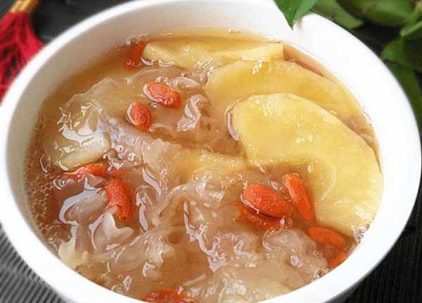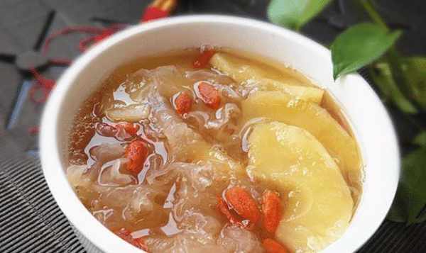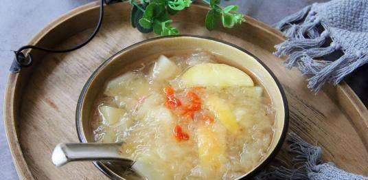 第五步:根据自己的需要加入冰糖和红糖,加入一些枸杞子,小火炖一会,就等这道水果汤做好了。香甜可口,营养价值翻倍。如果你不知道怎么吃,那就太可惜了。