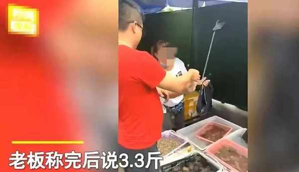 广东广州,一男子怕被商户坑,就带着电子秤去买海鲜,摊位称了3.3斤的海鲜,在自己的电子秤上却显示1.8斤,见他自己带了秤,摊位老板娘却抢过海鲜说,不卖了!