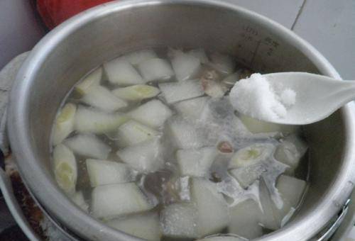 配料说明:准备一个250克左右的蜡南瓜(建议选择青皮冬瓜,冬瓜要很新鲜,没有发灰腐烂),买40克薏米,2-3个大葱,准备300克排骨(建议选排骨,颜色要新鲜,手感有弹性,无腥味),姜一大块,料酒适量,盐少许,鲜味少许、水适量,花椒鸡精少许,香油少许等。