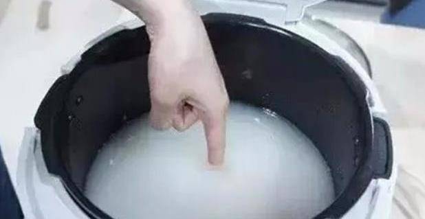 把大米洗过之后放在电饭锅里面,然后就可以加水了,水的量非常的重要,我们可以用食指来测量,一般只要没过食指一个关节就可以了,用这个水量蒸出来的大米软硬度是刚刚好的,不会太软,也不会太硬。