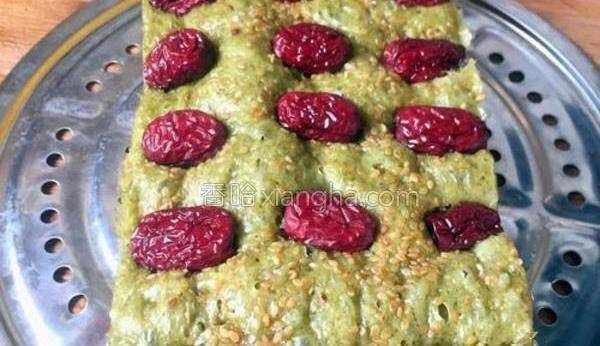 面粉400克、菠菜150克、南瓜150克、红枣适量、葡萄干适量、糖30克、发酵母6克、熟芝麻适量、温水适量