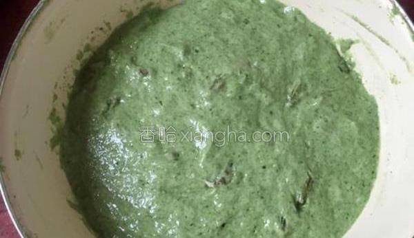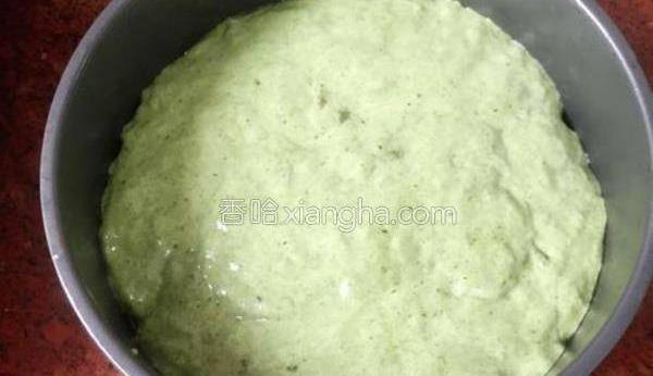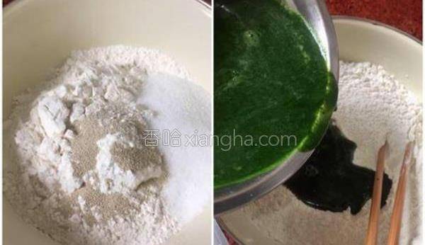3.200克的面粉里加上3克发酵母和15克的白糖,在加入适量的葡萄干搅拌均匀,再加入榨好的菠菜汁用小铲子把面和好