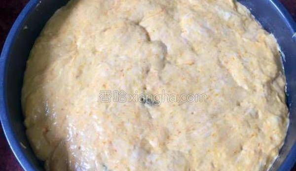 9.在加入南瓜面团,模具要留出足够的空间让它发酵