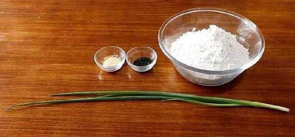 面粉,酵母,水,白糖,盐,小葱,熟黑芝麻,色拉油。