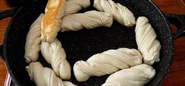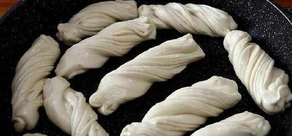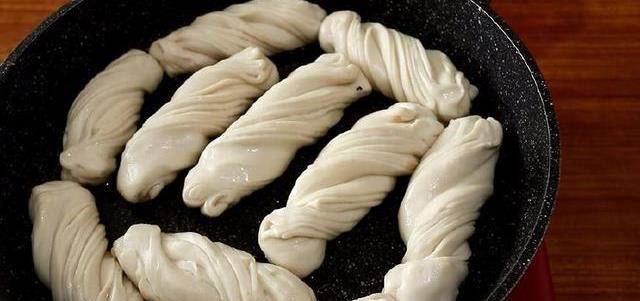 待花卷醒发好后,从周边淋入食用油,开始煎花卷。