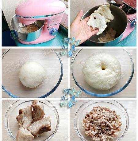 馅料:带皮五花肉500克,叉烧酱2汤匙,甜面酱2汤匙,盐1茶匙,黄酒1汤匙,生姜15克,大蒜10克,香葱20克,胡椒粉1/4茶匙,生抽2茶匙,老抽1茶匙,橄榄油1汤匙,洋葱100克,胡椒粉1/4茶匙