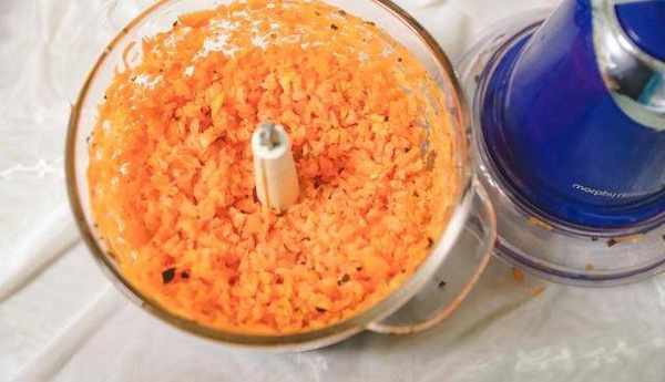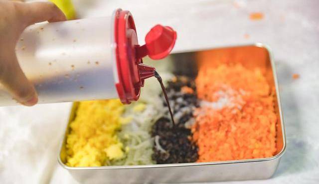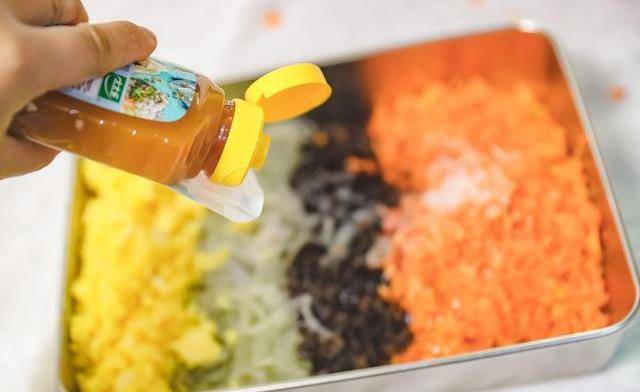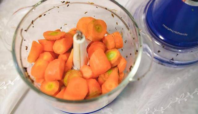 胡萝卜也是用同样的方式,弄成颗粒状。或者用擦丝的工具擦成丝儿!
