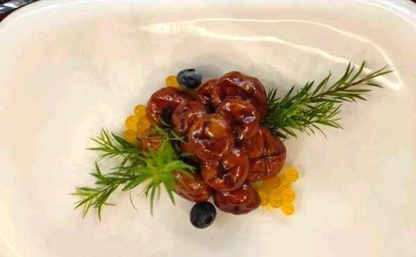 改刀后去掉舌根,下入油锅中炸至干香,下入调料熬制浓稠,将汁水完全包裹住鸭舌