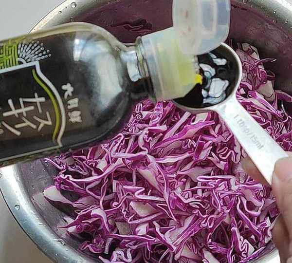 原料:紫甘蓝、普通面粉、六月鲜12克轻盐昆布酱油、味达美臻品米醋、白砂糖。