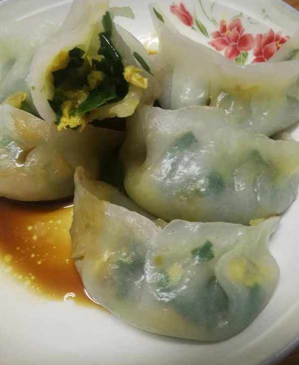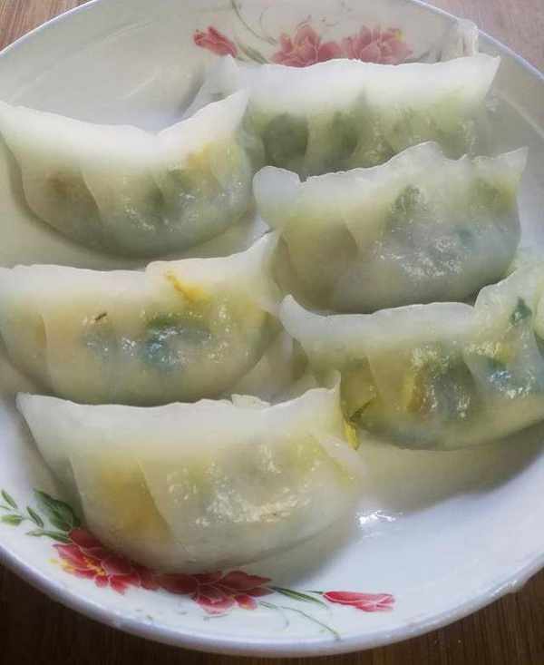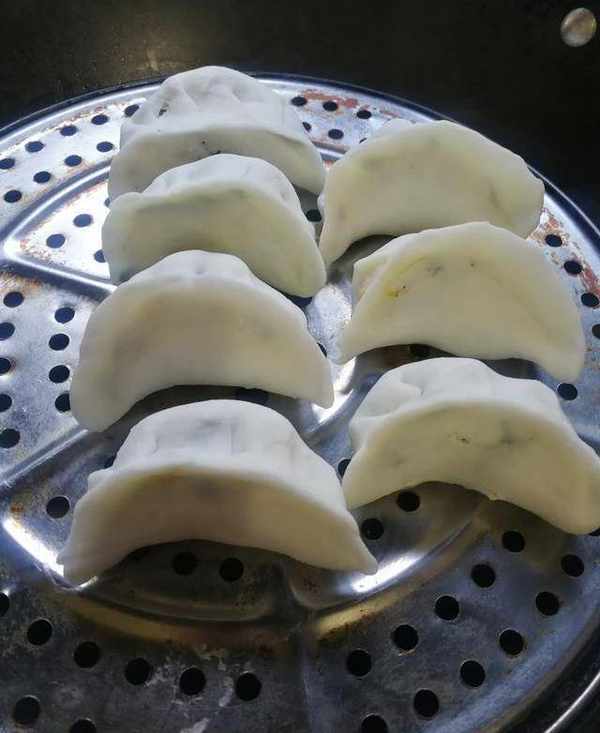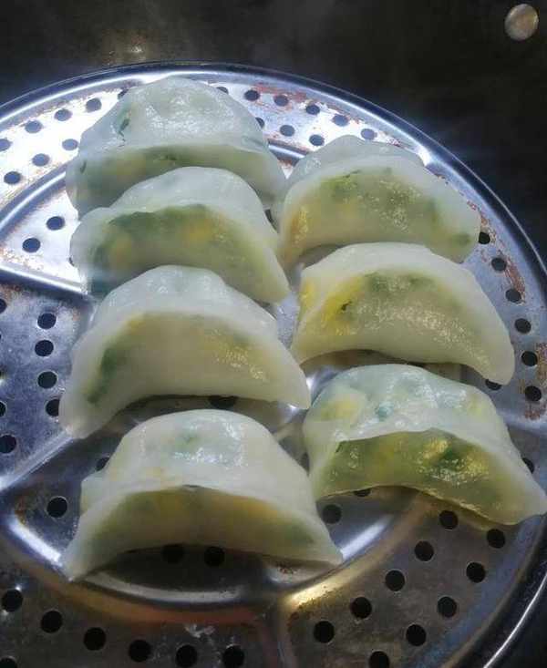 4,蒸水晶蒸饺:把包好的饺子放入锅里隔水蒸,上气后五分钟就蒸熟了。透明晶莹的水晶蒸饺非常漂亮,饺子皮劲道有弹性,配上韭菜鸡蛋素馅,完美结合,有颜值有味道,蘸上辣油会更好吃,小伙伴们行动起来吧。