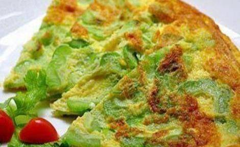 5.用小火炒,直到表面略黄。将表面上的蛋液浓缩后,倒一个大盘子倒在苦瓜蛋上,将蛋翻过来再炸一次
