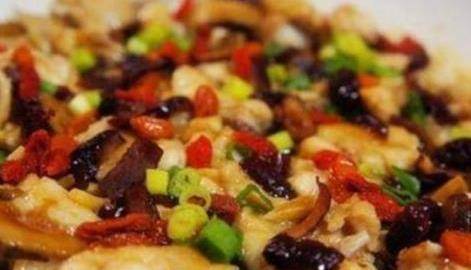 6.倒入鸡肉和香菇并充分搅拌,将混合的鸡肉和香菇放在盘子上,放入蒸锅中。