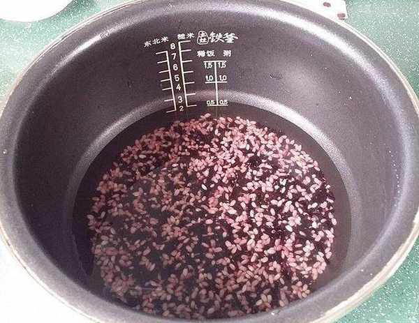 3、倒入电饭煲加少许清水,水量比平时煮饭略少些,煮好的糯米饭才会颗粒分明有劲道