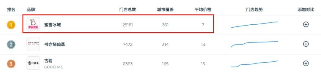 在门店数量上,蜜雪冰城当之无愧地成为中国新茶饮品牌的“王者”。