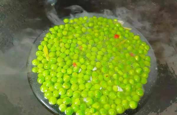 Tips:加盐可以保持颜色不变,可以杀菌。加食用油可以防止豌豆米的营养减少。焯水时还可以加点姜丝,去掉豆腥味。