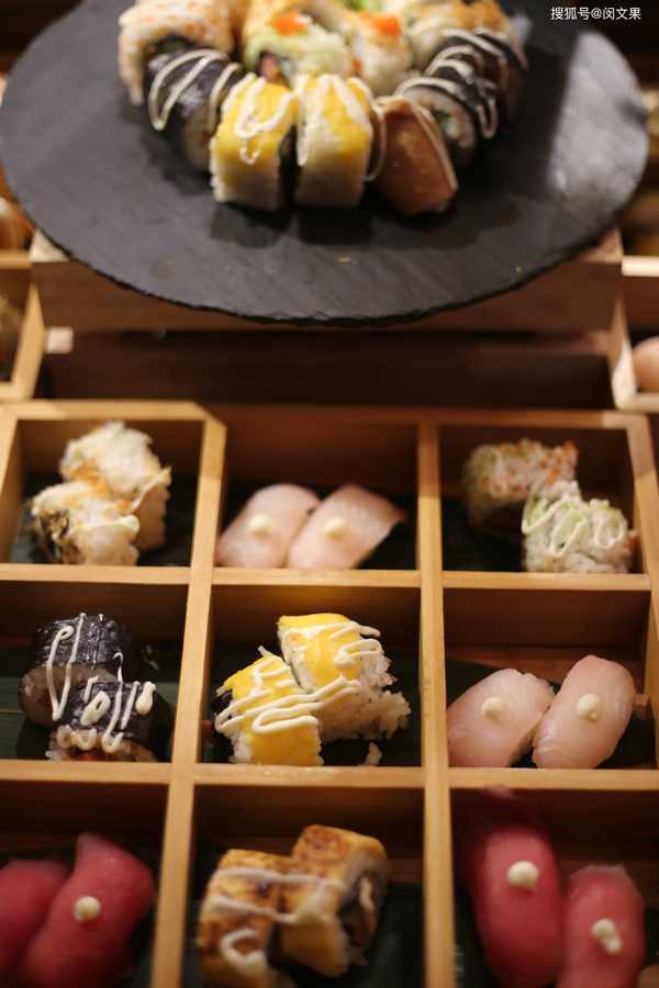 再说说午餐吃到的几道特别菜品,三文鱼芝士温暖,最后装饰调料是厨师现场在餐桌进行的,很美味,三文鱼也感觉很新鲜;还有一道类似甜甜圈的饭团,感觉还蛮创意的,也是好吃的。最后甜品天妇罗冰淇淋,不知道具体菜名叫啥,总之很惊喜,冰淇淋被包裹在轻微油炸好的天妇罗里,切开冰淇淋露出,口感丰富,有层次感。这间日料餐厅,人均在300+左右,价格还算OK吧,针对商务人士还有68元左右的定食可供选择,超高性价比。